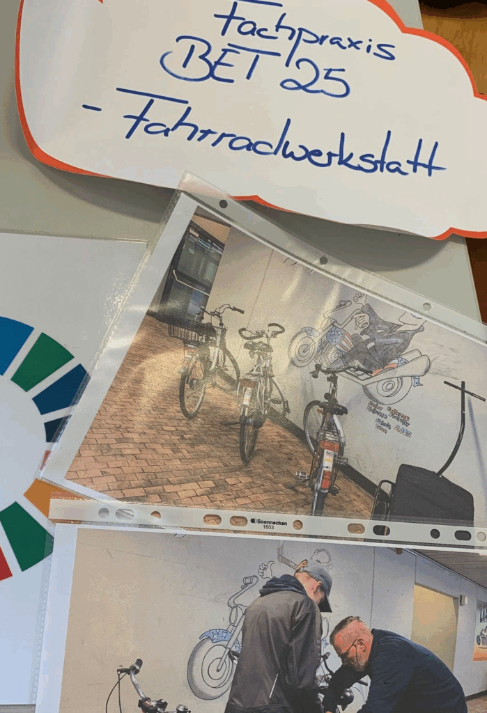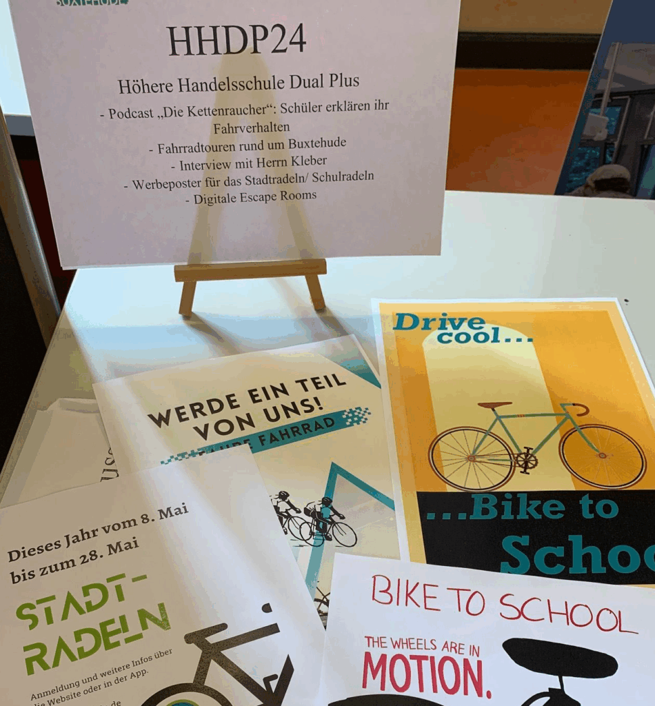 Für die BBS Buxtehude haben vier Schüler/-innen der Fachoberschule Ernährung und Hauswirtschaft (FOEH24) das Treffen begleitet. Die Klasse beschäftigt sich im Lerngebiet 12. 1 „Ernährungsverhalten bewerten“ mit dem Thema Adipositas und Diabetes mellitus Typ II und erschließt daraus Handlungsoptionen in Form von Ernährungsplänen und Bewegungsmöglichkeiten ( Fahrrad fahren).